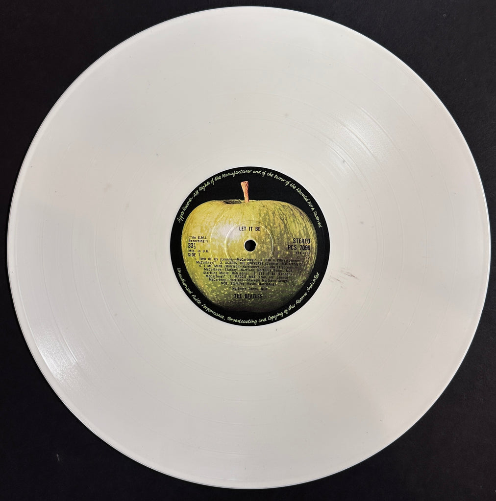 Here we have a British copy of The Beatles Let It Be (PCS 7096) pressed on white opaque vinyl. The vinyl is graded as VG++ and the cover is graded as good.