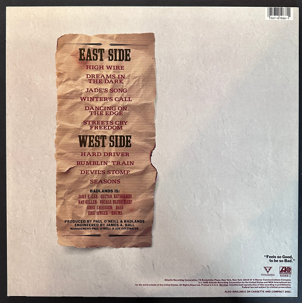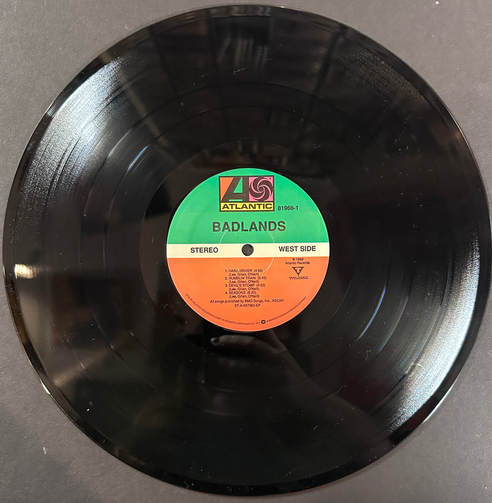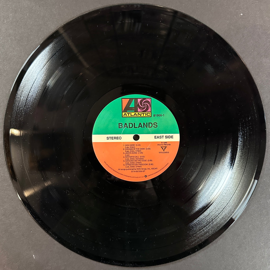 Here's a 1st pressing of hard rock band Badlands' self titled debut album, put out by Atlantic (7 81966-1) in 1989. Bluesy and heavy. Both the cover and the vinyl are VG+.